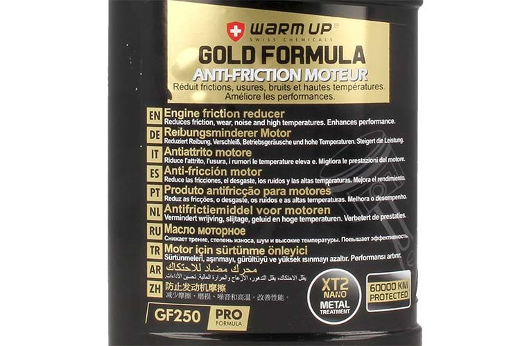 WARM UP ® GOLD FORMULA is a new technology for the treatment of anti-friction, anti-wear and extreme resistance pressure in diesel engines, gasoline and biofuels. Product of synthesis without solid particles, acts as a treatment and metal film coating the surface (formula antifriction XT2 PROCESS).