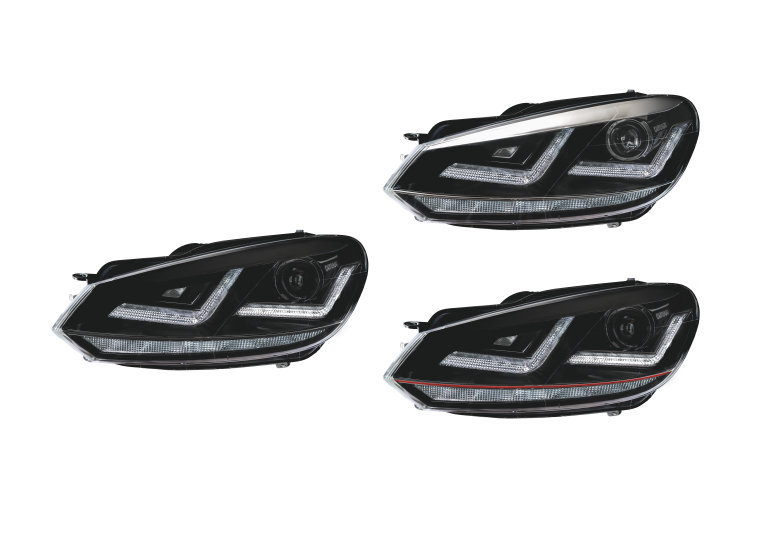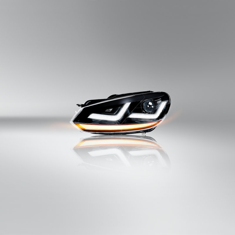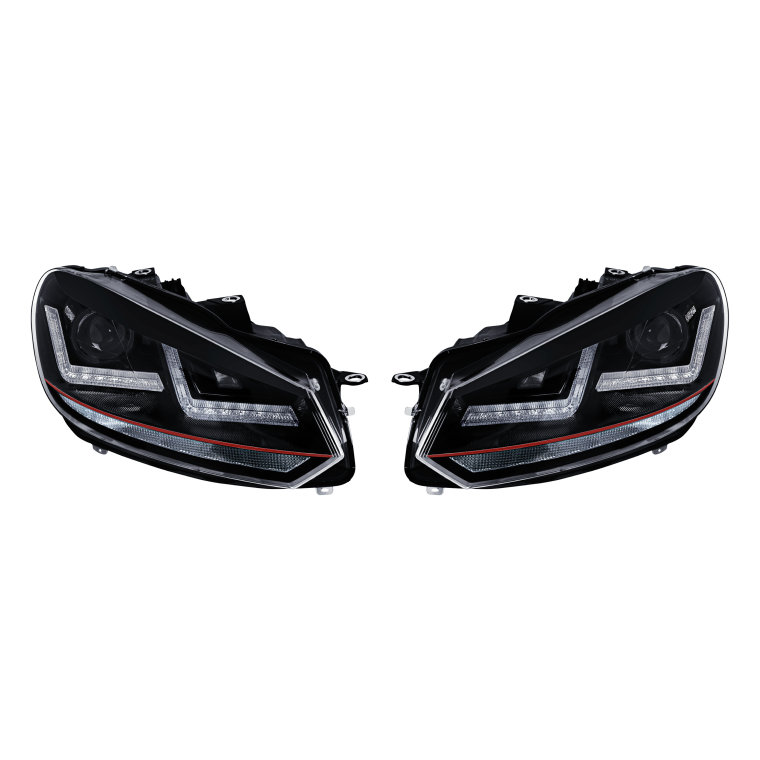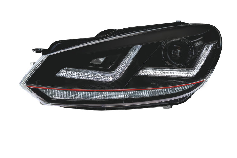 LEDriving XENARC Golf VI – GTI – this premium LED headlight by OSRAM picks up the GTI’s stylish red grill stripes to create a seamless look. Thanks to state-of-the-art lightguide technology, the LEDriving XENARC light with pixel-free optic generates a maximum of light on the road: an up to 20 m longer light cone and up to 70% more light than standard headlights with halogen lamps. This means better visibility and more time to react. Added to this, is the up to 40% whiter light compared to standard headlights with halogen lamps. The LEDriving XENARC Golf VI – GTI edition allows simple, quick self-installation with plug and play. OSRAM offers a 2 year guarantee on the LEDriving XENARC Golf VI headlights. Note: Upgrading to the ECE-approved LEDriving XENARC headlight complies with all legal requirements – no need to fit automatic leveling or a headlight-cleaning system.